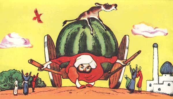 Вырос на поле Аджар-бая огромный арбуз. С трудом взвалил он его на арбу и повез домой. Задыхаясь от усталости, пел он песню: