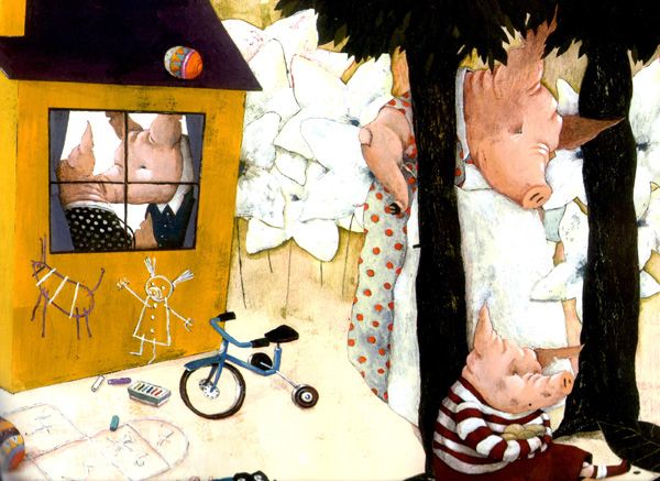 Внезапно огромная тень выросла за его спиной. Страшное чудище схватило поросёнка и вот-вот готово было проглотить его.