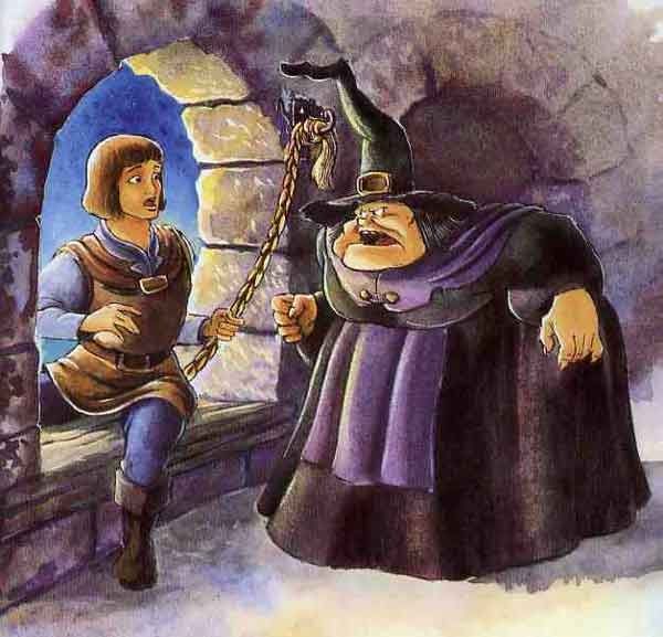 Тогда девочка перебрасывала свою косу через окно и колдунья по ней поднималась в башню.