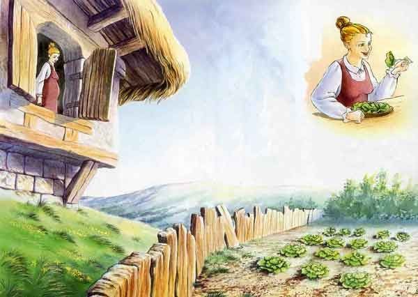Спустя некоторое время жена только и думала, что о салате. Она становилась всё бледнее и бледнее. Наконец муж так встревожился, что решил забраться ночью в огород сорвать немножко салата. Как задумал, так и сделал.